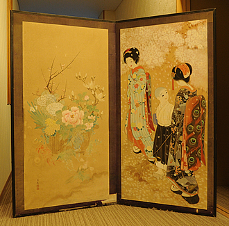 瀬川家は、拙寺のお檀家さんであり、時代は不明であるが、瀬川家から寄贈された屏風がある。銘は「松園」とあり、本物の上村松園のものであったら大変なことになるが、贋作であった。「魚半」に出入りしていた画家のものであろうか。
