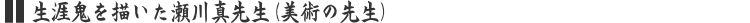 美術の瀬川真先生をご存じであろうか。戦時中から昭和43年まで東部地区で中学校の美術のヘ員として、教鞭をとられていた。教えを請うた人も、まだまだご健在であろう。